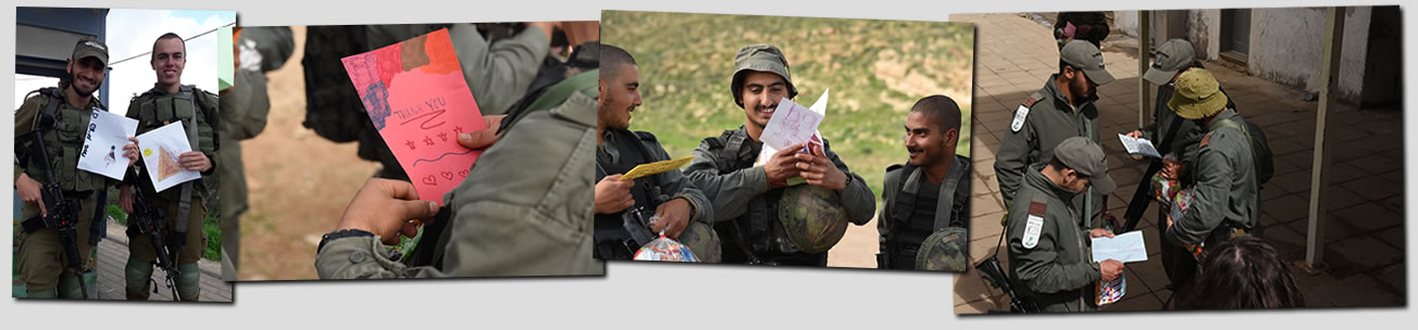 We are a group of veteran immigrants from English speaking countries who appreciate what our cherished soldiers of the IDF do in defending our Homeland all year round. Through our children, friends and neighbors we have seen how a little TLC can go a long way in making our soldiers smile and feel loved. Jewish people living in the Diaspora communities share these sentiments and we have therefore developed letter2IDF to allow them to join us in saying Thank You and sending love to our chayalim.